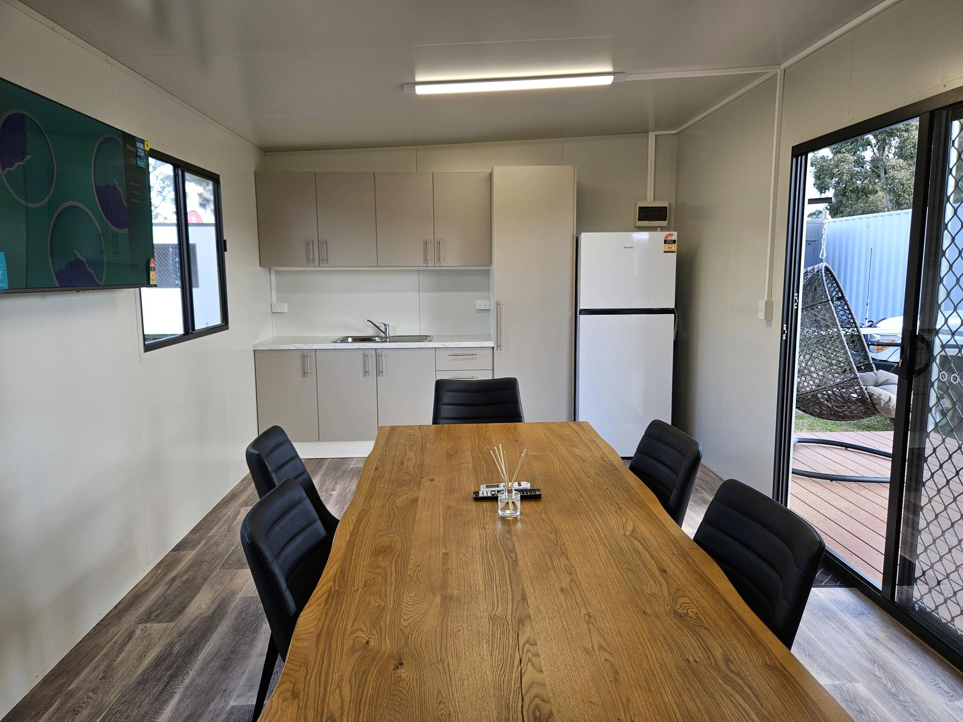 Options available in customising – corporate colours, partition walls, to glass sliding doors orkitchens, it could be a games room for the kids to lounge around in. Or comms room for the factory.